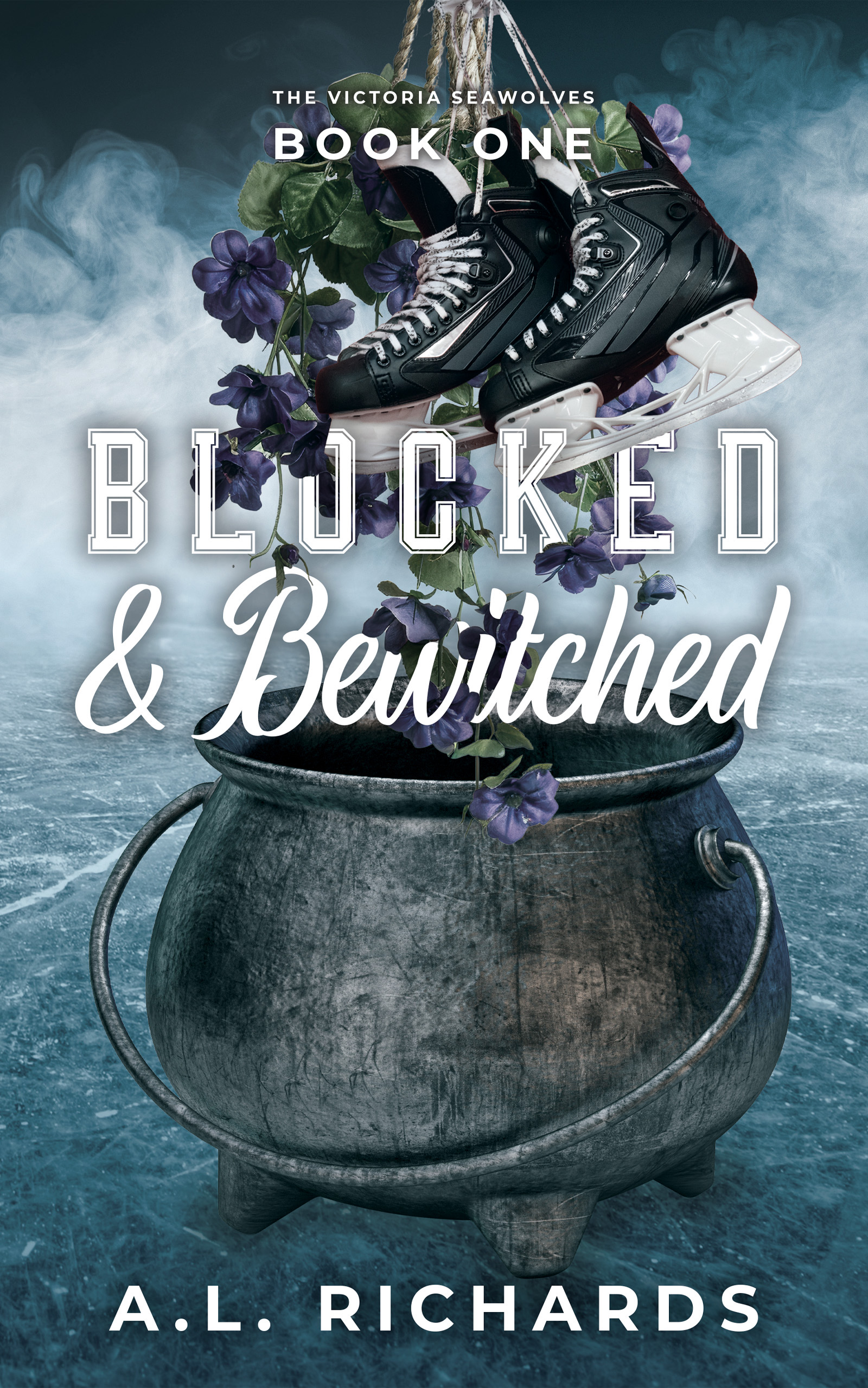 Hockey romance with a paranormal twist, featuring a grumpy witch and a golden retriever goalie.